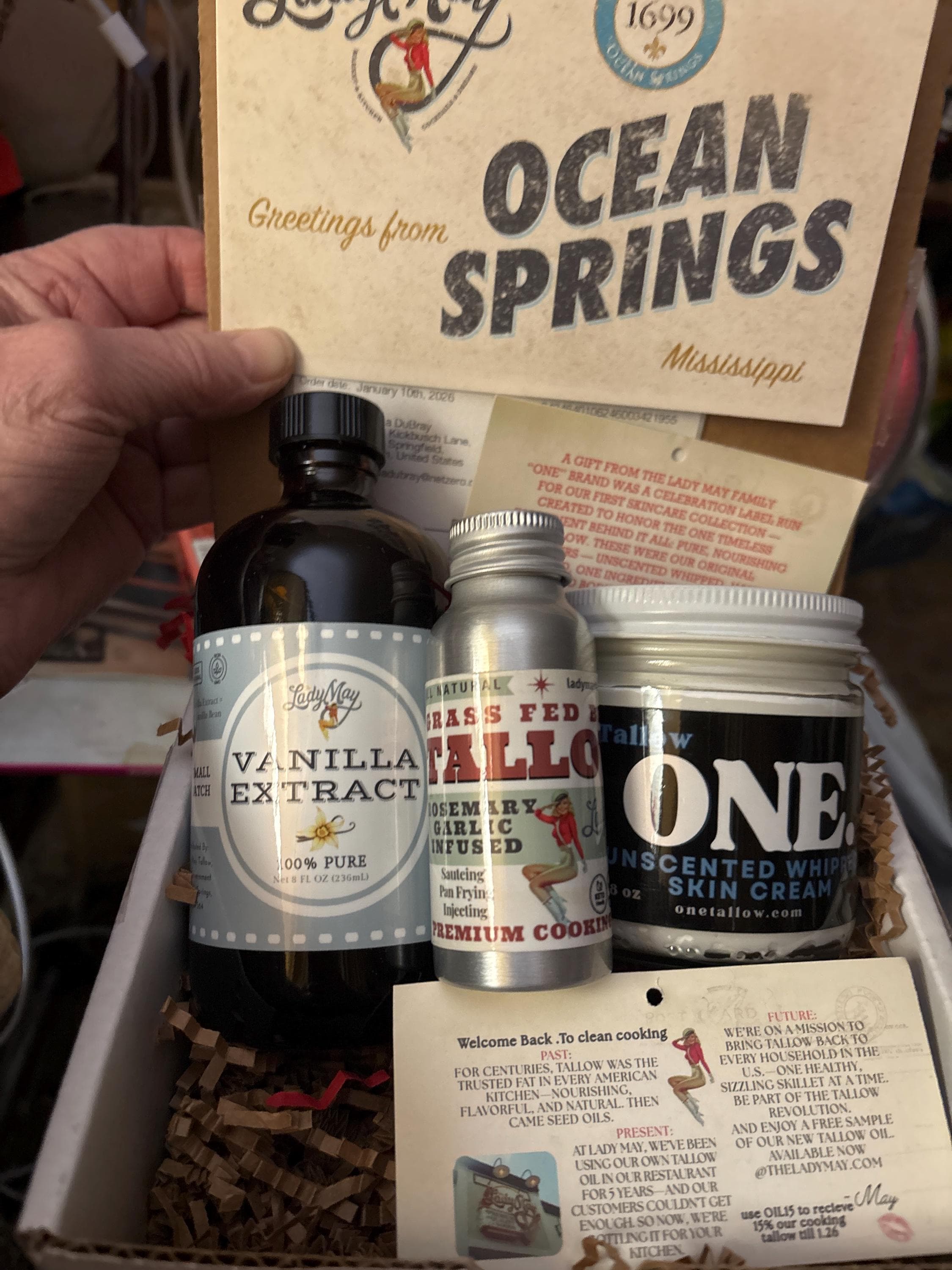I received the vanilla extract I ordered. It smells amazing. I didn’t realize Madagascar vanilla beans were used in this. I got this as a gift for my daughter. She’s an amazing cook and she’s just going to love it And I also received extra items as gifts! An 8 ounce jar of Tallow ONE, Unscented White Whipped skin cream. I can’t wait to try this.. And also, a little aluminum bottle of GRASSFED BEEF TALLOW (rosemary garlic Infused premium cooking oil). What wonderful treats!!