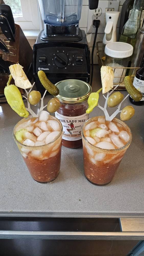 The Lady May's Bloody Mary mix is very good! We have added horseradish and mustard for a touch of more flavor. The mix has enough spicy heat and complexity to make it enjoyable with a few accouterments.
